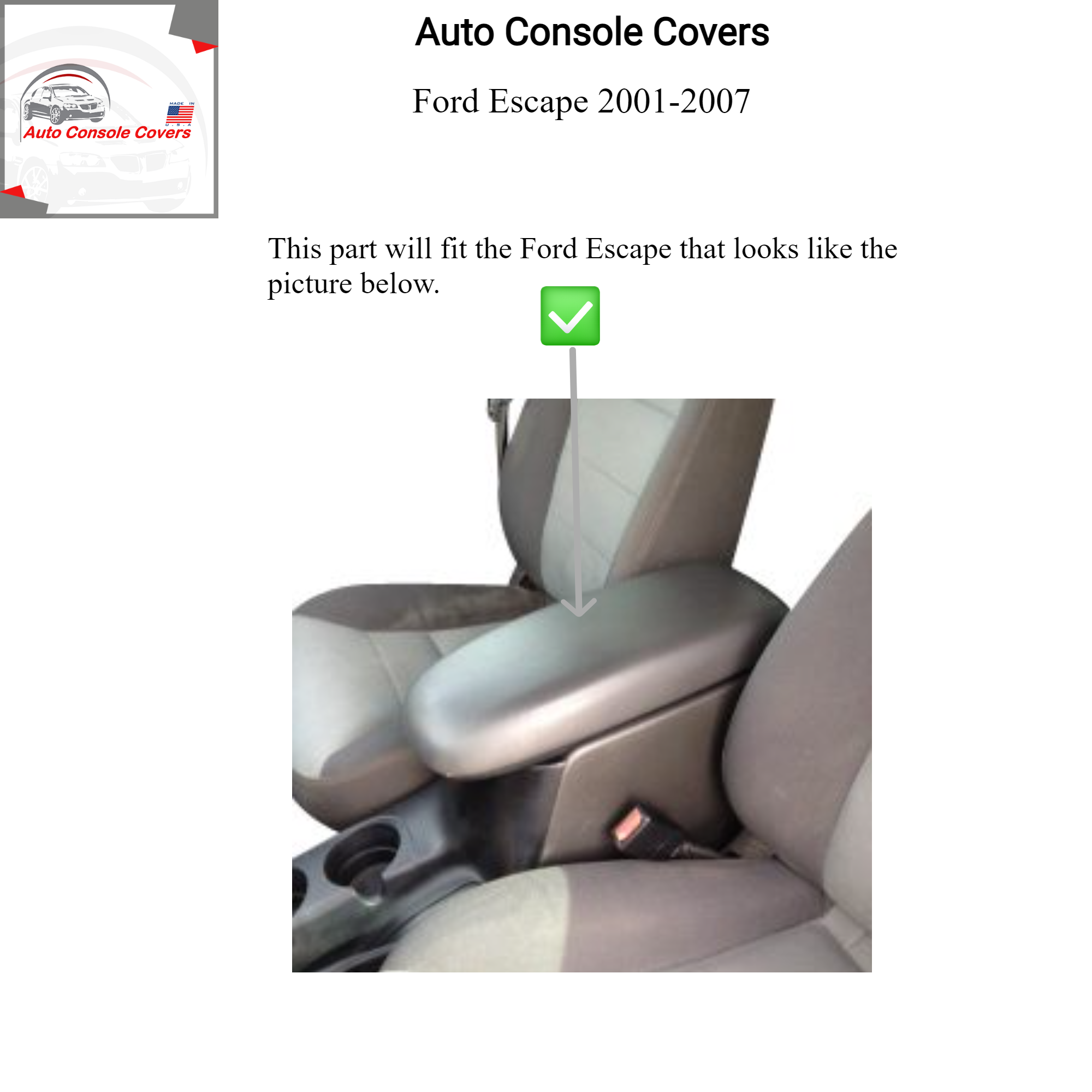 Buy Center Console Armrest Cover Fits the Ford Escape 2001-2007- Fleece Material