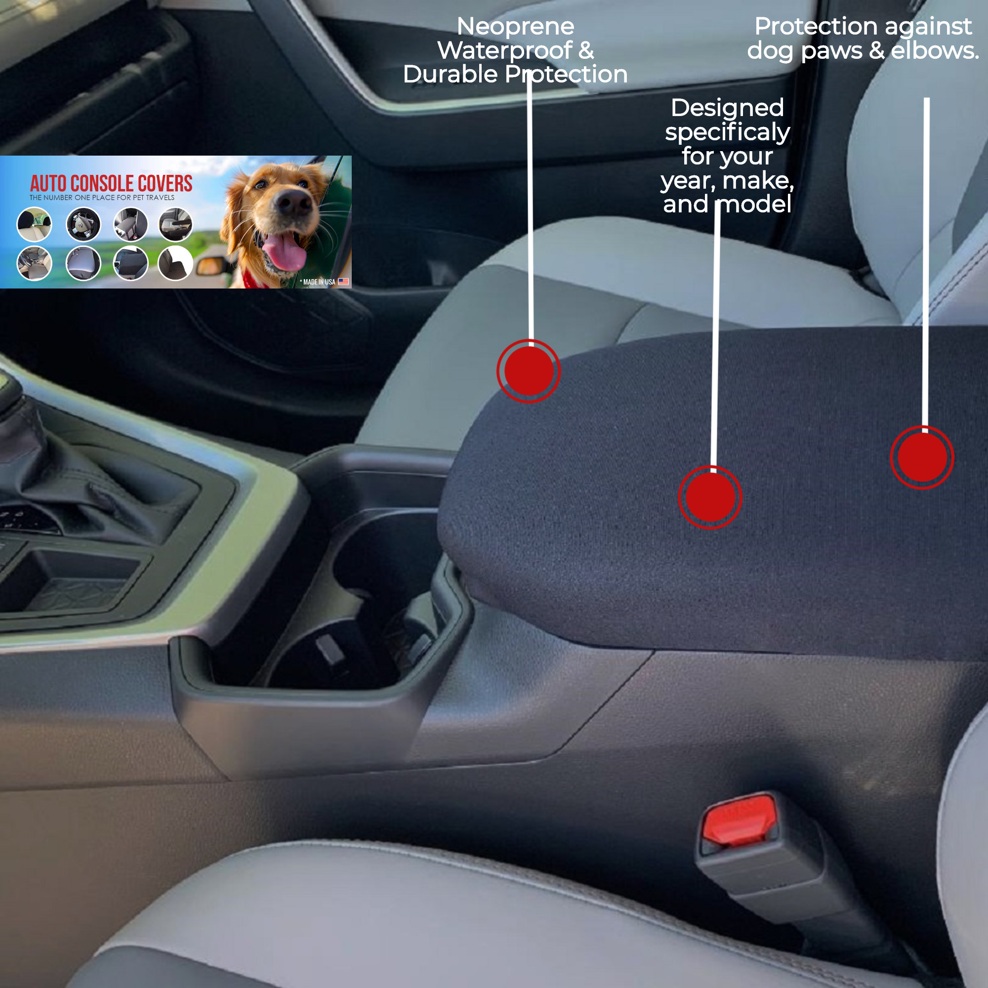 Our cover is made to fit over your existing center console armrest lid cover.