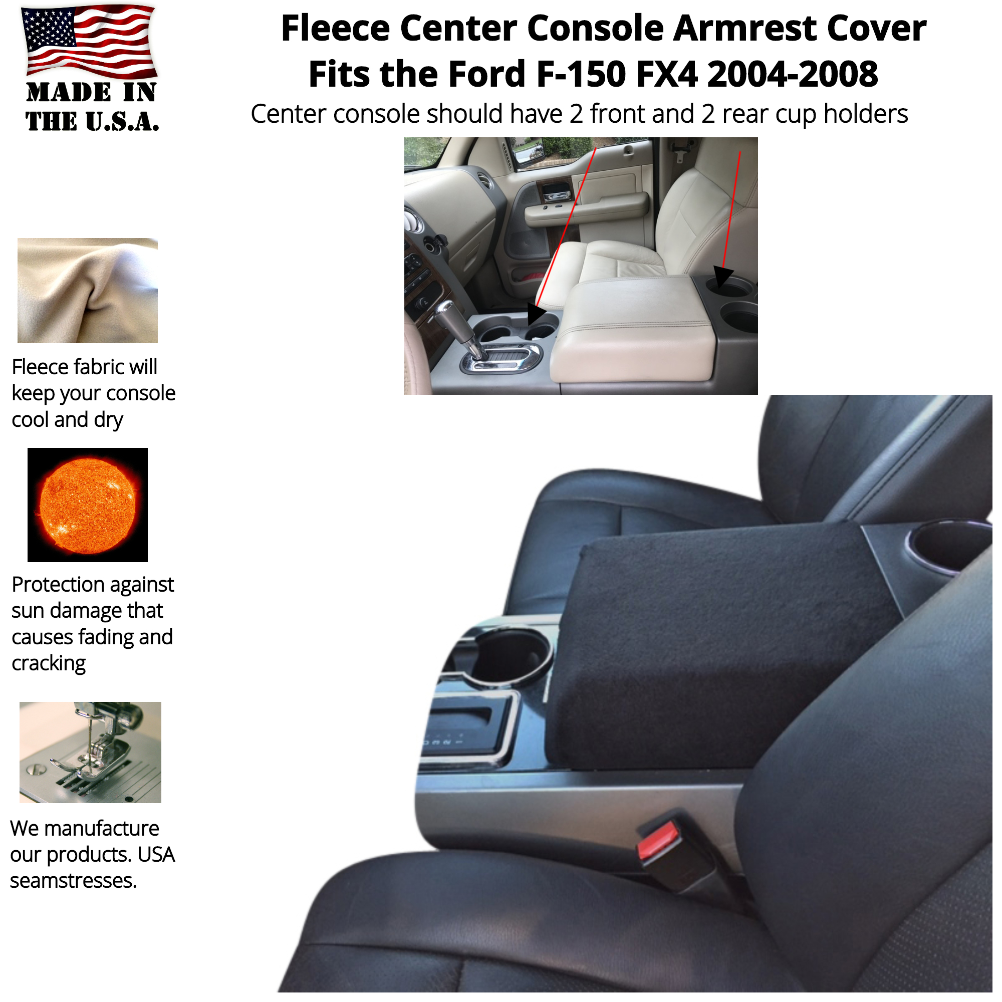 Buy Fleece Console Cover Fits the Ford F-150 2004-2008 XLT, Lariat, Limited, FX2, FX4, Platinum, & King Ranch Models