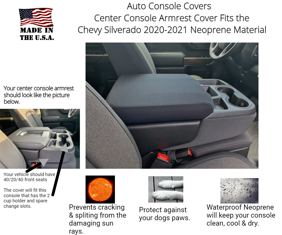 Buy Neoprene Center Console Armrest Cover Fits the Chevrolet Silverado Custom 1500, 2500, 3500, 2020-2025