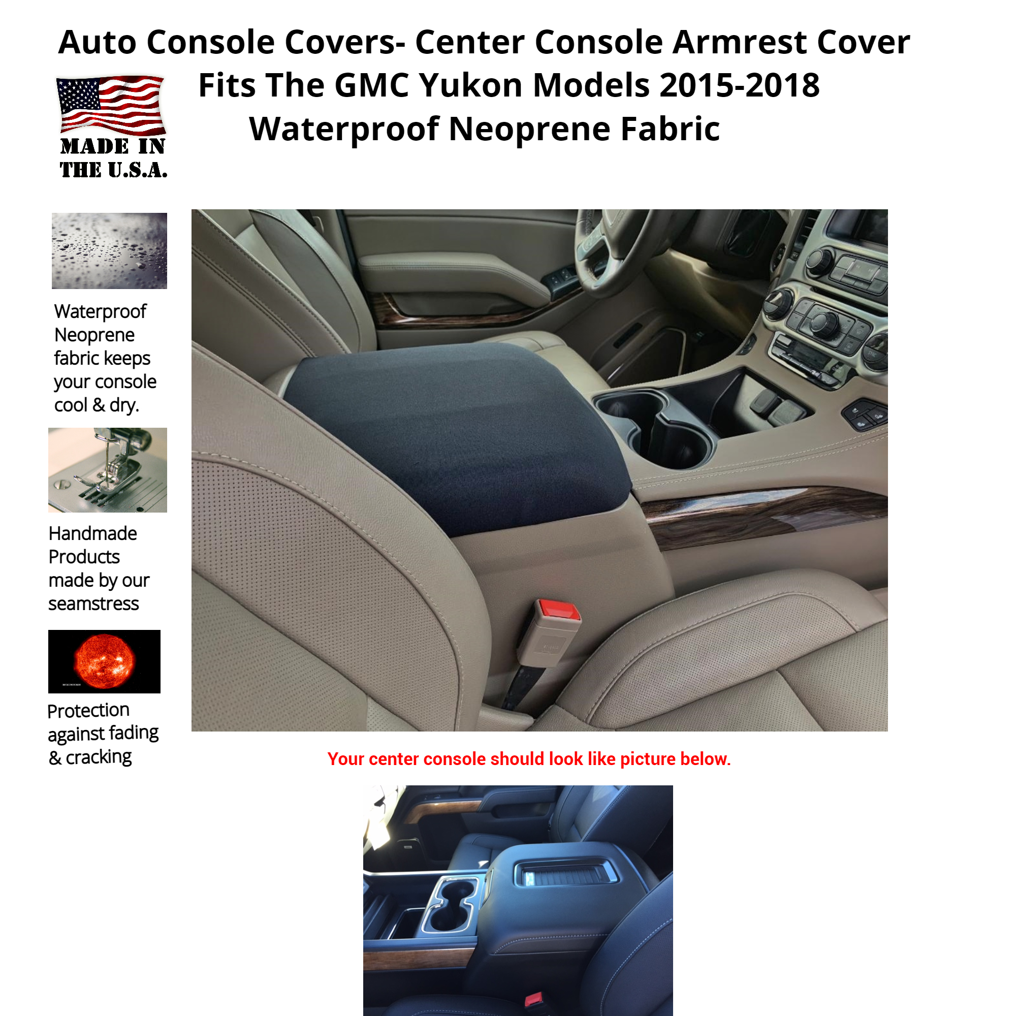 Buy Neoprene Center Console Armrest Cover Fits the GMC Yukon 2015-2018